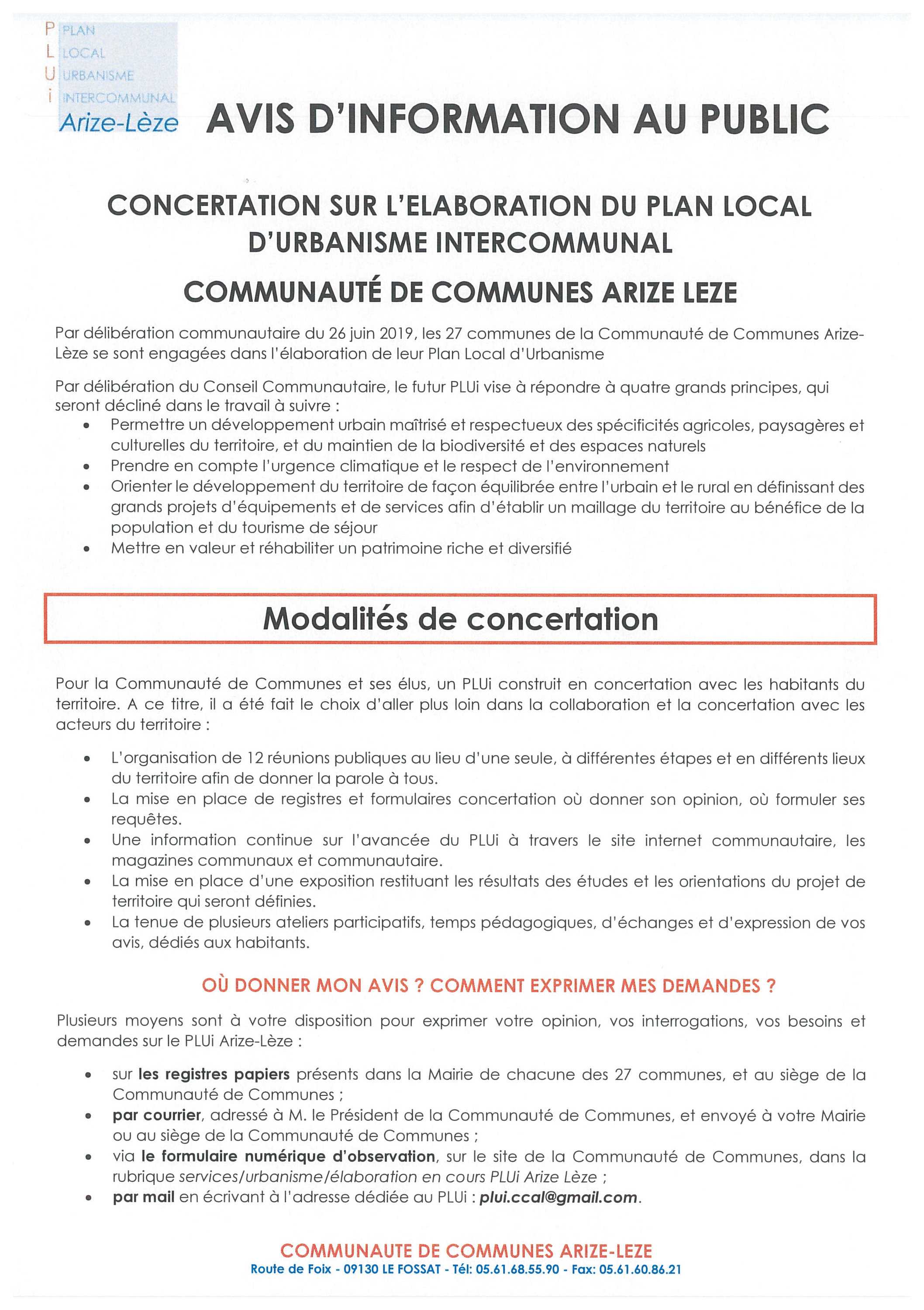 vousetesici Accueil Procédure d’élaboration du PLUI ARIZE LEZE AVIS CONCERTATION PUBLIQUE