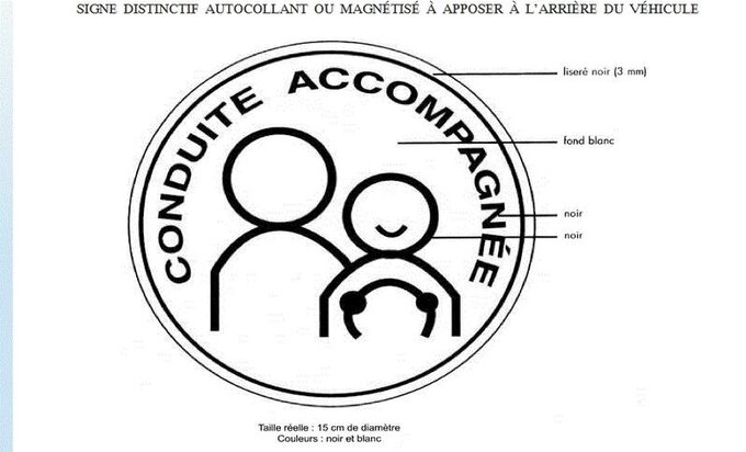 Un signe distinctif autocollant ou magnétisé être apposé à l'arrière gauche du véhicule.