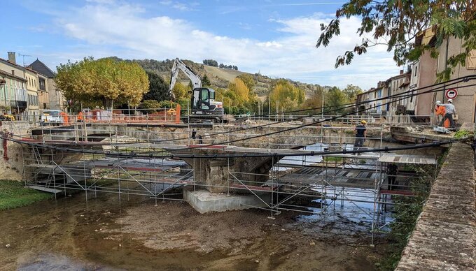 Les premiers travaux consistant à renforcer la pile du pont sont terminés.